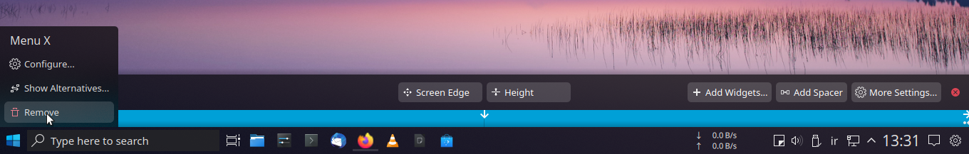 فقط قبلش پنل اصلی kdeرو حذف کنن برای این کار برروی پنل راست کلیک کرده و گزینه edit را انتخاب کنید سپس گزینه removeرا انتخاب کنید . دیگه کار تمومه